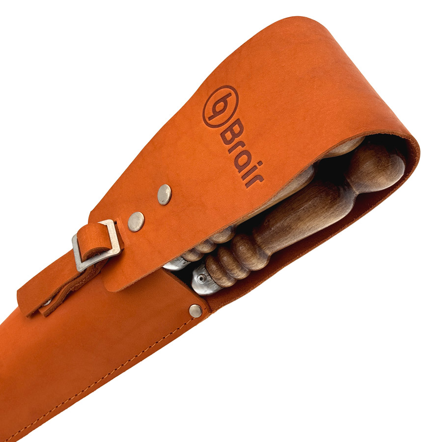 ✅ Стильный и практичный чехол Кожаный чехол не только защищает шампуры от повреждений и загрязнений, но и делает их удобными для переноски. Прочный ремешок с пряжкой надежно фиксирует набор, а фирменный логотип Brair подчеркивает ваш вкус и статус.