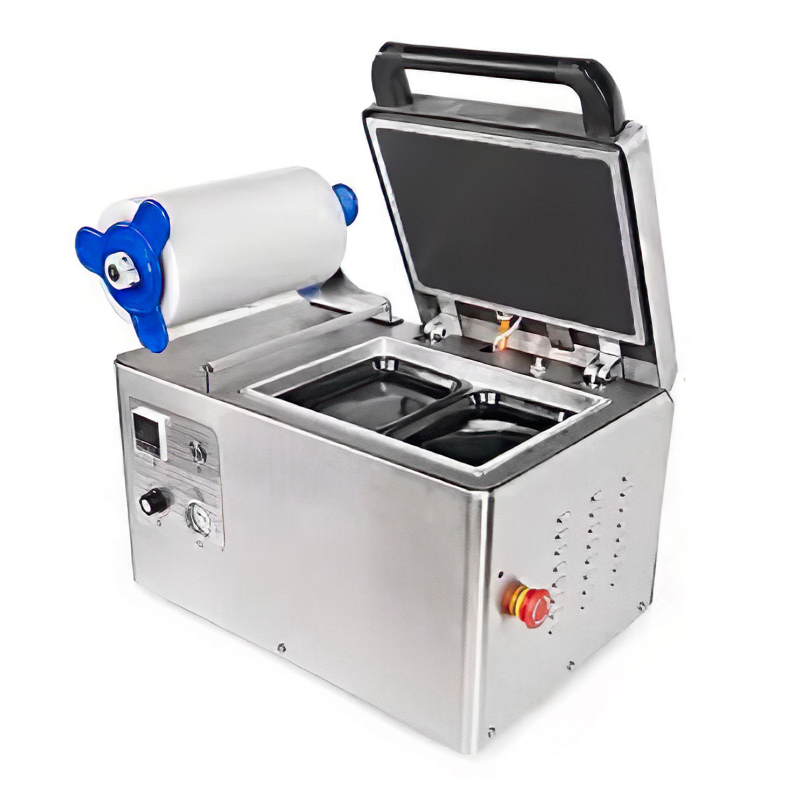 Трейсилер Skin Master MINI — компактное и надежное устройство для герметичной упаковки продуктов в лотки. Подходит для малого и среднего бизнеса, обеспечивает производительность 100–240 поддонов в час. Устройство выполнено из нержавеющей стали, имеет компактные габариты (600 × 430 × 510 мм) и вес 38 кг, что делает его удобным для установки на любой производственной линии. Работает с пленкой шириной до 250 мм и максимальным диаметром 200 мм. Потребляемая мощность — 1,2 кВт, напряжение — 220 В. Включает насос с производительностью 10 м³/час. Идеален для упаковки мяса, рыбы, овощей и готовых блюд.